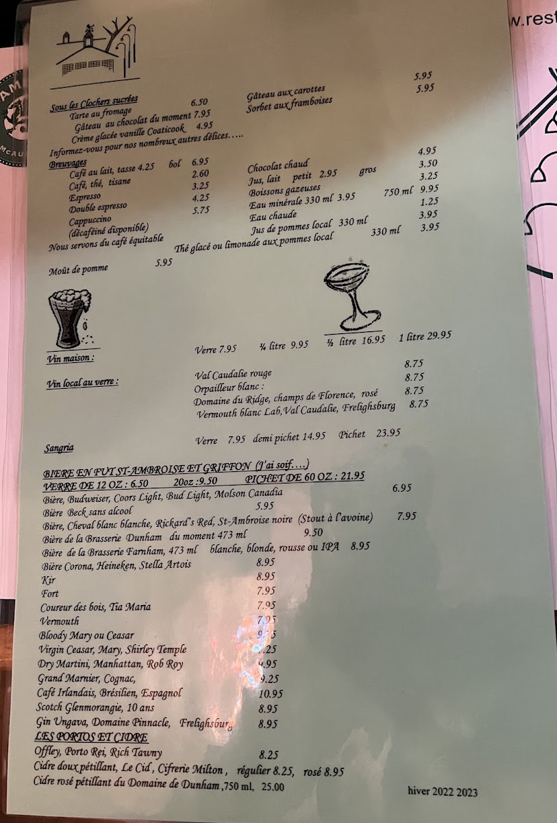 Welcome to Restaurant Aux 2 Clochers, a delightful culinary gem nestled in Frelighsburg, Quebec. This charming establishment boasts an eclectic menu featuring savory main dishes like the Toulouse Bacon Cheddar Sausages and the succulent Prime Angus Hamburger Steak. Each plate is crafted with care, promising a gastronomic adventure at reasonable prices.